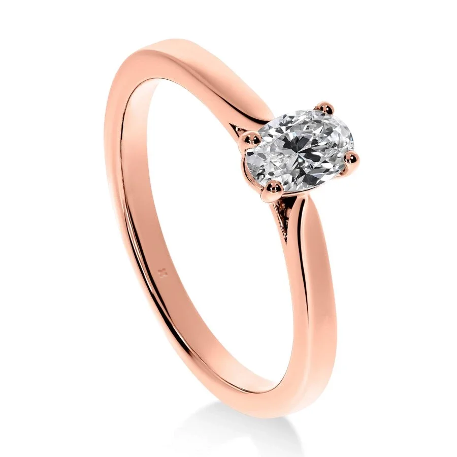 Personnalisable en or 18K (blanc, jaune, rose) ou platine, cette bague met en valeur un diamant ovale certifié IGI. Conception française, éthique, garantie à vie.